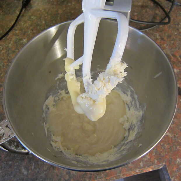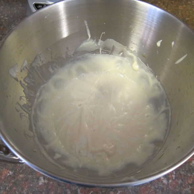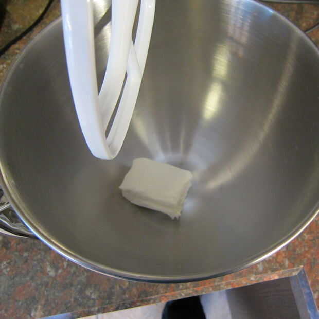 Añadir queso crema en el recipiente de una batidora y crema con el azúcar hasta que quede suave. Añadir en enfriado pudín y mezclar hasta que quede suave.