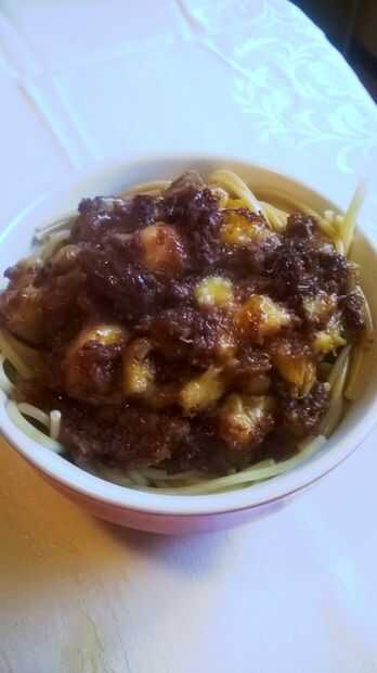 Cuando hay algo un poco más a una salsa que a rodajas plátano en su bandeja, viértala sobre los espaguetis como si fuera una salsa regular.