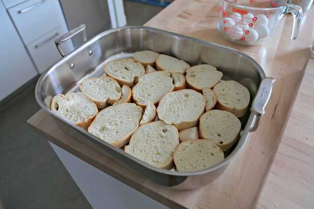 Coloque rebanadas, cara abajo, en una cazuela. Asegúrese de que todos los sectores estén al ras contra el fondo del plato.