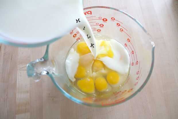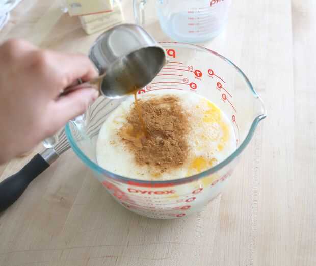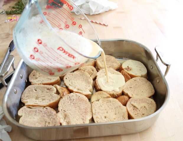 Mezclar leche, huevos, sal, canela y extracto de vainilla. Dar una buena azotaina, a continuación, vierta la mitad de la remojo sobre pan, asegúrese de distribuir uniformemente sobre todas las rebanadas de pan