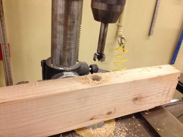 Utilizando el taladro y una broca forstner taladrar los orificios para taquetes.