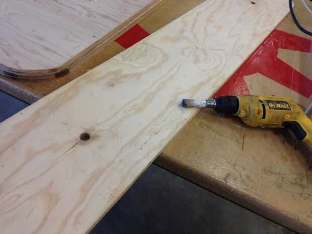 hoja de madera contrachapada de 4 x 8. A continuación, marque las ubicaciones de los orificios para taquetes y