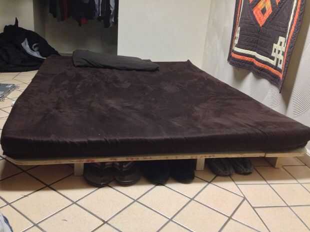 diseño el 2x4s con su enclavamiento cruzado a la mitad las juntas asegurarse de tener todos los agujeros hacia arriba. luego coloque las hojas sobre el 2x4s y coloque los tacos en los agujeros. y de hecho... somier simple para elevar mi sobrecolchón