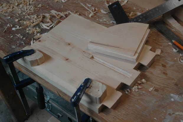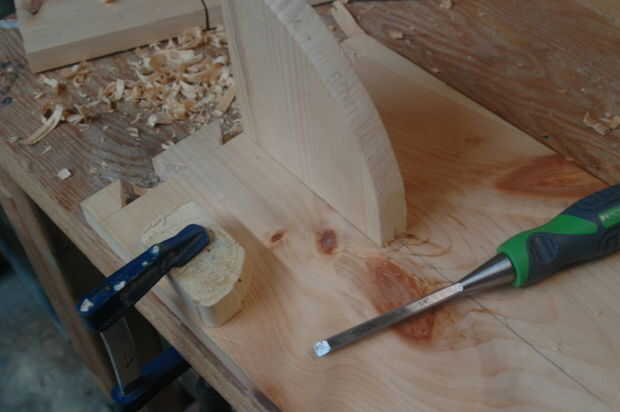En mi caso, tuve un canal mortaja debajo del Banco y luego bajando por el lado de cada pierna. Los soportes entonces tenían coincidencia de espigas cortadas en ellos y encajan derecho en esas ranuras. Viendo que estaba ocupándose de madera suave y fácilmente marcada, hice las espigas más delgadas que el grosor del soporte. Esto permitió la espiga para hundirse totalmente en la mortaja y luego tienen el borde más ancho del apoyo totalmente cubrir todo.