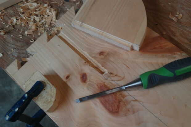 Para cortar la mortaja fuera sólo utiliza un exacto para iniciar el trazo y luego 0,25" cincel para quitar el material. Prueba frecuente guarniciones aseguraron que llegué a la profundidad adecuada.