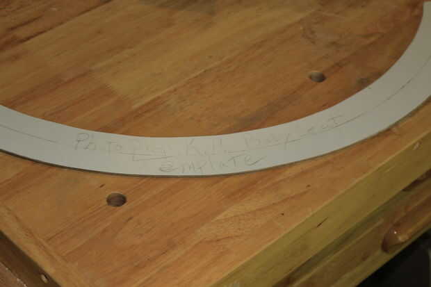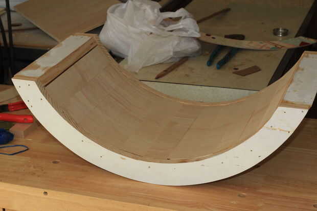 Esto es donde me topé con problemas. el 1/4" madera contrachapada no quiso doblar alrededor de esa radio. Intentado y lo intentaron y no podía conseguirlo sentarse correctamente en todos.