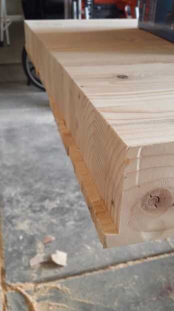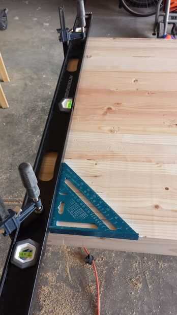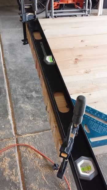 Utilice un borde recto (nivel) y una escuadra para obtener una línea agradable incluso por los extremos de la mesa.
