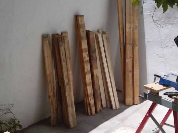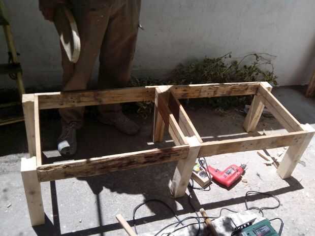 con las maderas de dos paleta desmontados y algún trozo de madera más hice la estructura y las patas