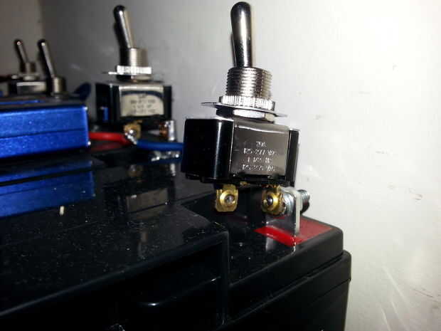 Por un coste muy reducido y menos materiales había soldado la cabeza de un perno en una terminal del interruptor. Esto proporciona una conexión mecánicamente fuerte y eléctricamente bajo la resistencia. Para asegurar el interruptor en el polo positivo de la batería, sólo enroscar y apretar la tuerca.