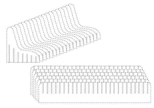 Cuando tienes al estas piezas decides cómo son colocados dentro de otra, esto es fueron las incisiones desempeñan un papel. Los cortes tienen que estar centrados y entre cada corte debe ser la misma cantidad de espacio. Mira cuantas mm el cartón y las incisiones 2 veces esta todo.