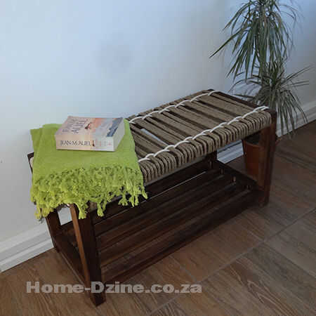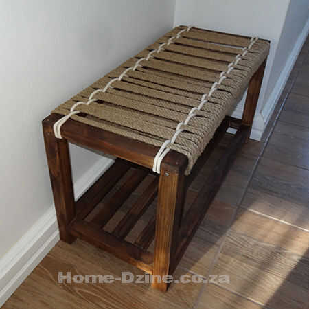 Este banco de cuerda de yute es muy fácil de hacer y es lo suficientemente fuerte como para dos personas para sentarse. Uso PAR pino, cuerda de yute y marco el cable que usted encontrará en su depósito de ferretería para hacer de este banco de yute como un accesorio decorativo o para añadir a un baño o dormitorio. Creo que este banco de yute sería perfecto para un baño pequeño y puede añadir cestas en el estante de almacenamiento de información. O coloque el Banco de yute en el extremo de una cama.