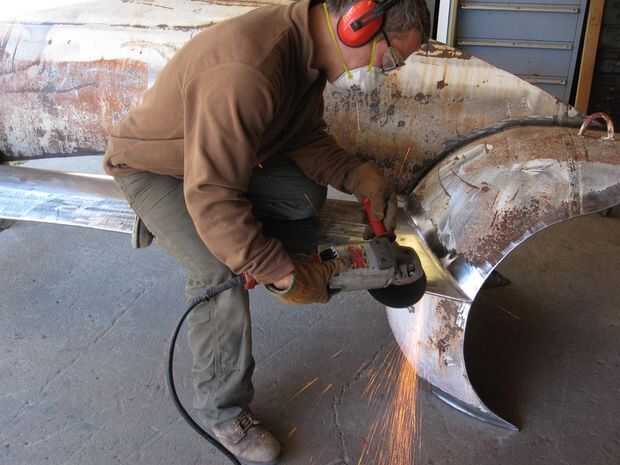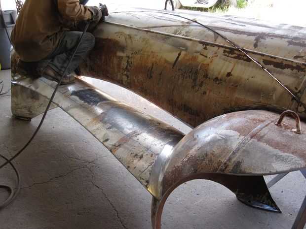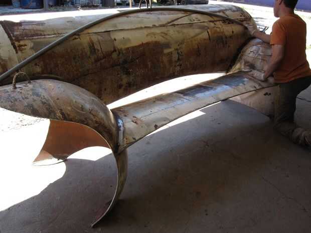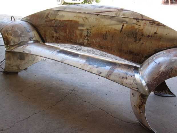 Utilicé un trozo de plástico EMT para marcar una curva suave para que el borde superior del respaldo antes de podar. Conecte a tierra las soldaduras y otros filos.