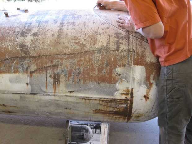 Los tanques de 575 galones tienen 37" de diámetro, suficientemente grande como para apoyar las dimensiones básicas del asiento y el respaldo mencionadas anteriormente, así que decidí cortar primero y luego ajuste el asiento y el respaldo entre ellos.