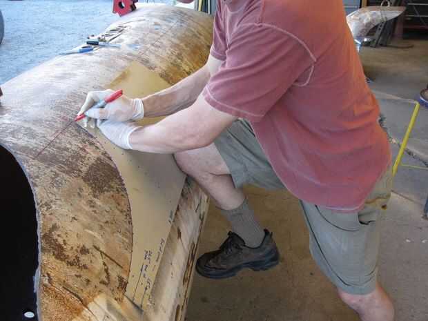 He utilizado la misma plantilla que había hecho para la captura de la sede conjunta para hacer la plantilla para el respaldo. Ojos de lo que pensé sería una buena posición para permitir que el respaldo ofrecer soporte lumbar al darse cuenta de que todavía debían determinar la posición exacta. He marcado el material restante del tanque y mis cortes.