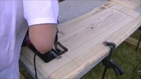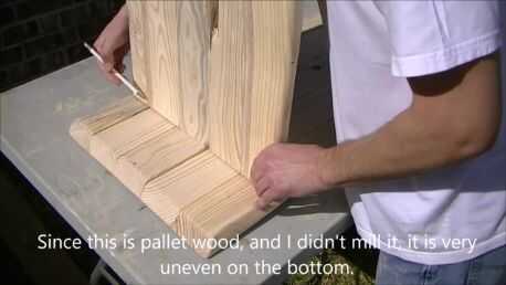 Puesto que se trata de madera de la plataforma y no la muelo, fue un poco irregular en la parte inferior. Tuve que hacer una ranura para que las piernas podrían encajar mejor en la parte inferior de la mesa. I utilizar la sierra circular para hacer la ranura y luego la había refinada con un cincel y un papel de lija en un bloque de lijado.