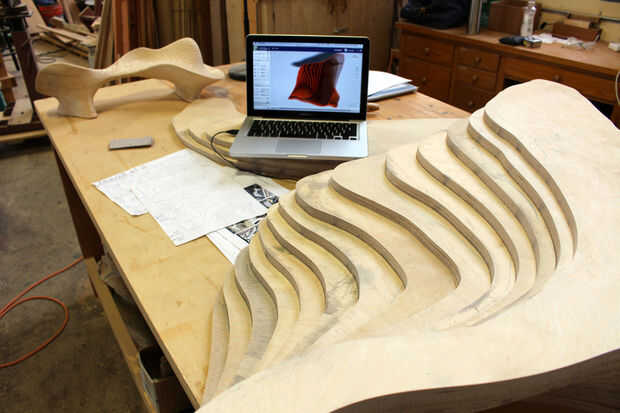 El Banco se compone de capas de 61, un total de 90 piezas de madera contrachapada.