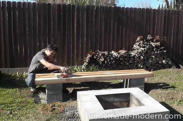 Banco de hormigón al aire libre moderna bricolaje casero (10 / 14 paso)