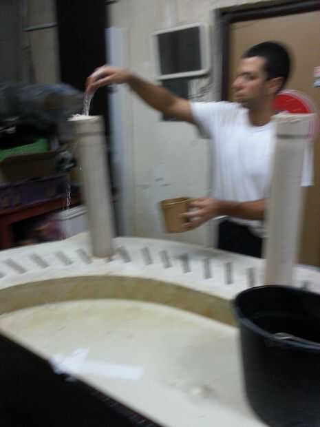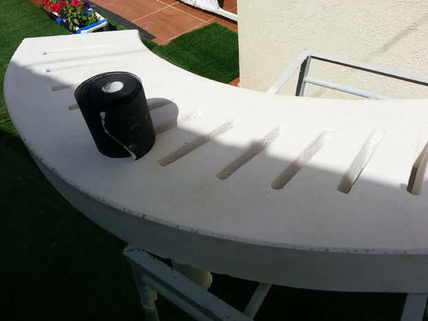 Después de retirar toda la suciedad del Banco. Vierte mucha agua y sumerja en el concreto durante cada cepillado y el proceso de pulido. Hora de empezar a cepillar con un cepillo de alambre. Entonces, con tres niveles de lija 80-140-240 grano