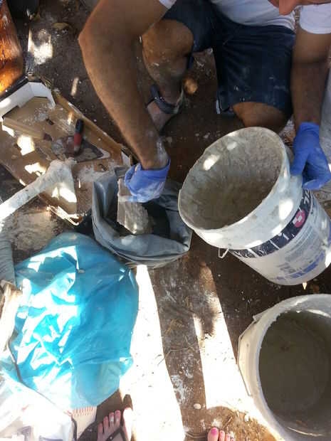 si te fuiste con concreto extra no tiene nada que con - DONT TROW IT - en lugar de otro hacer rocas de jardín hermoso simplemente: 1. Vierta concreto en una bolsa de arena 2. golpe con un palo para alinear la TI 3. que conjunto y venga comprobar mañana estás nuevo jardín rock!