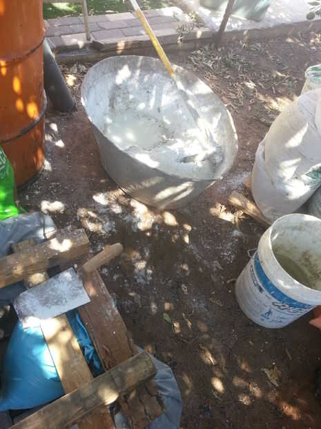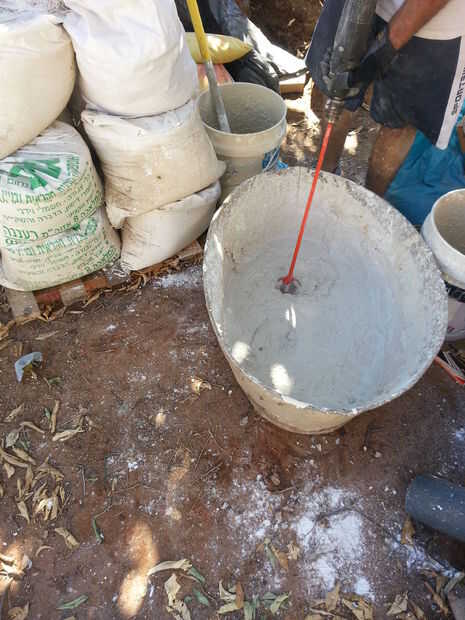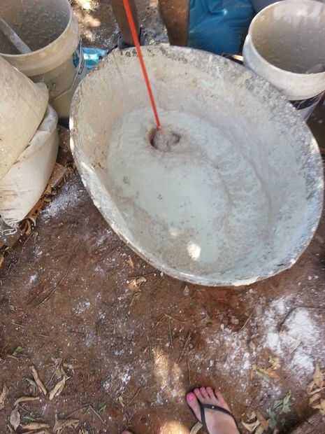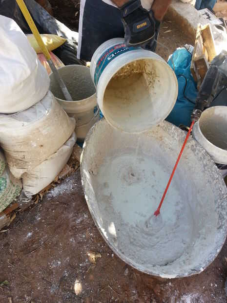 Inicio utilizando una pala para mezclar bien la mezcla y solamente que el uso del taladro eléctrico para la mezcla final
