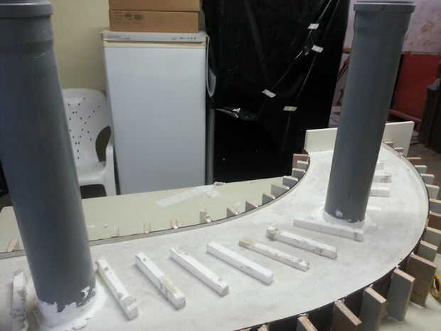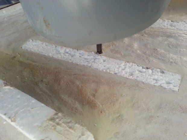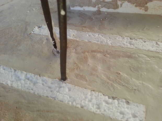 Cortar con cuidado la espuma de poliestireno a planos como el concreto y limpiar la zona de restos de hormigón y colocar los tubos de P.V.C. en las localizaciones exactas fueron sobresale la estructura de hierro.