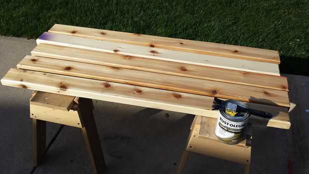 La clave del proceso de montaje es pensar fuera de la caja y crear este banco para arriba-lado-abajo, para que ninguno de los tornillos se veía.