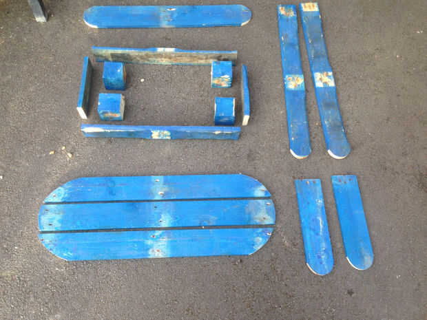 Para el asiento usé 3 piezas de la parte superior central de la plataforma que eran cerca de 1m de largo y 100mm de ancho.
