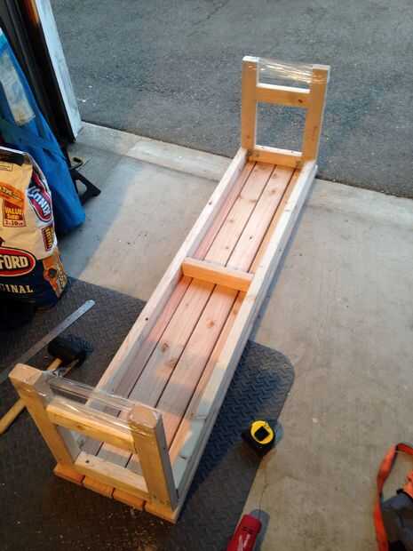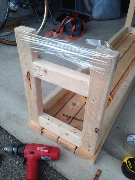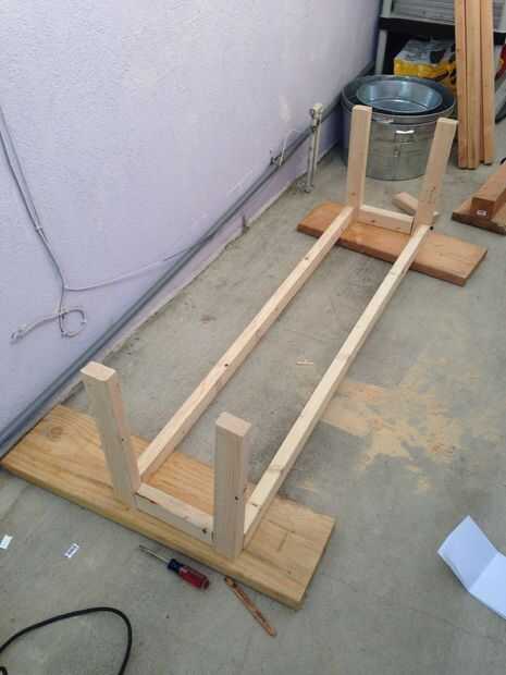 Utiliza el líquido clavos y tornillos para empezar a armar el marco principal y las piernas, todos de 2 x 3.