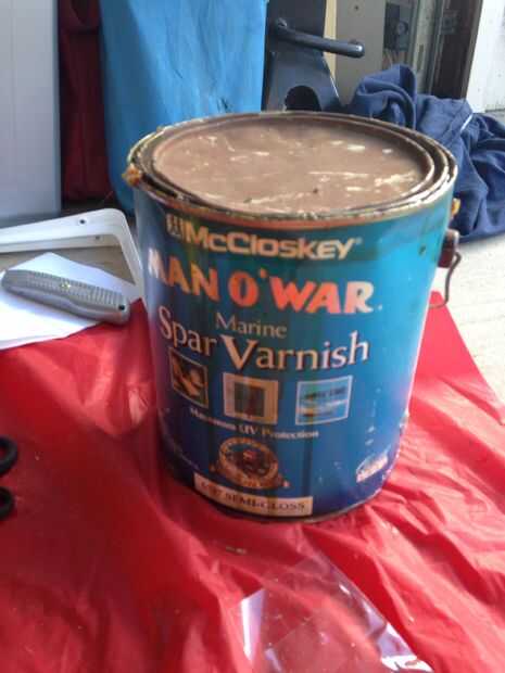 En la mañana aplica una capa gruesa de barniz de grado marino con una brocha barata regular. Este material es desagradable, un respirador y un montón de ventilación es muy recomendable.