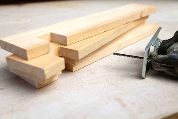 Hecho algunos simples patas de pino. Cortar muescas para que la ranura en el Banco.