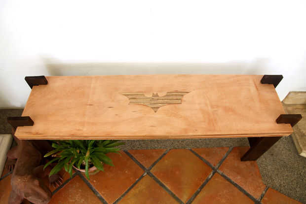 Banco de madera contrachapada de Batman bricolaje con Shou Sugi prohibir las piernas (8 / 8 paso)