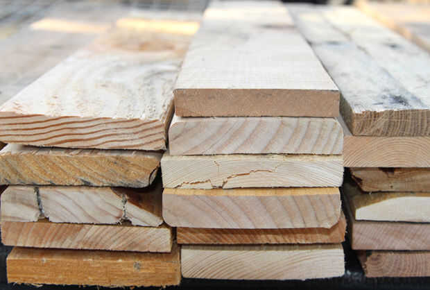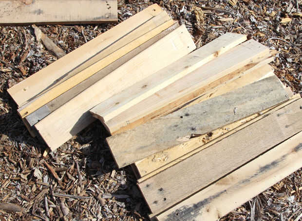 Como se puede ver tenemos un montón de piezas de la misma longitud. Aunque la madera de palet es muy irregular, todavía queremos que los cortes tan limpios y cuadrados como sea posible. Este jig funcionó muy bien.