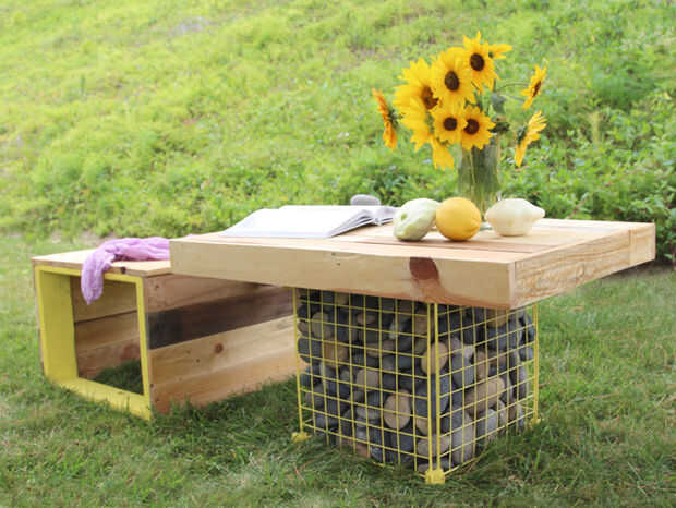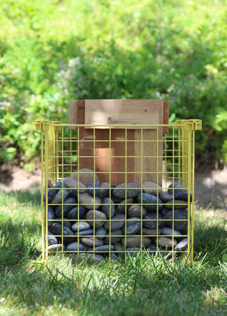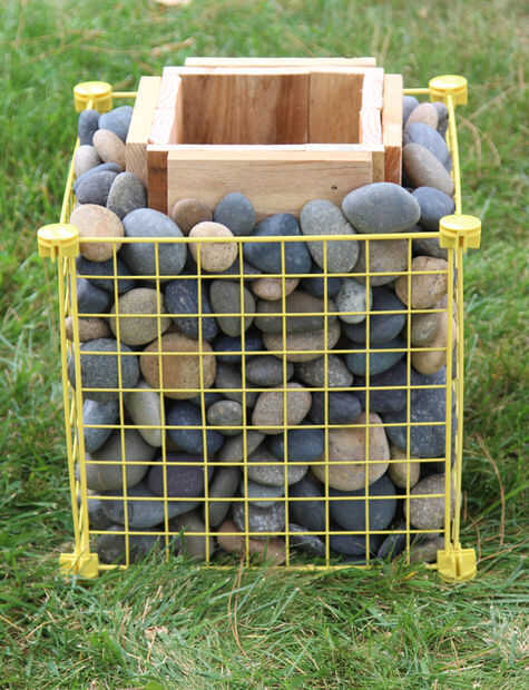 Centro el poste hueco dentro de la jaula del alambre de metal, piedras de relleno todo el post en la parte superior. Deslice la base interior del poste de la mesa. El peso pesado mantener el puesto y la mesa en lugar y crear una base fuerte y robusta.
