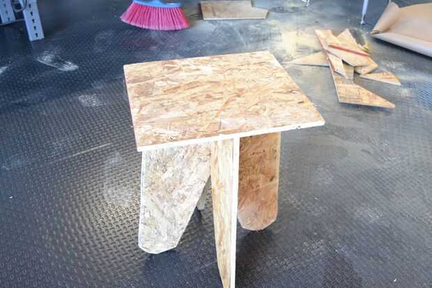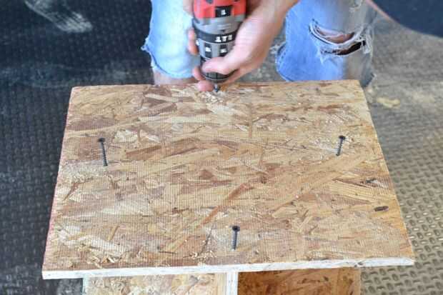 Para la parte superior trazaremos un cuadrado de 45 cm de la tabla nos sobró. Lo cortamos y ponemos sobre la base.