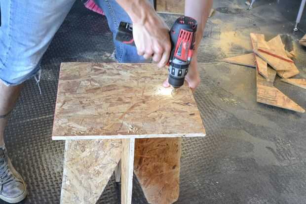 Ahora perforamos con la ayuda de una broca (dependiendo del ancho de tu tabla) procurando queden los agujeros exactamente sobre cada uno de los lados de la base y seguido de esto colocamos las pijas.