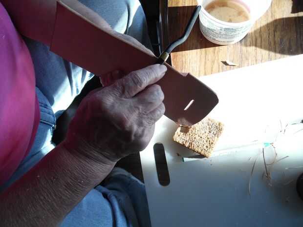 Borde y mancha la parte superior e inferior de la aleta. Borde y pulido sólo la parte superior del cuerpo. El fondo es un borde de costura. Borde y slick a ambos lados de la manija. No borde o pulido de las piezas. Estos son los bordes de la costura.