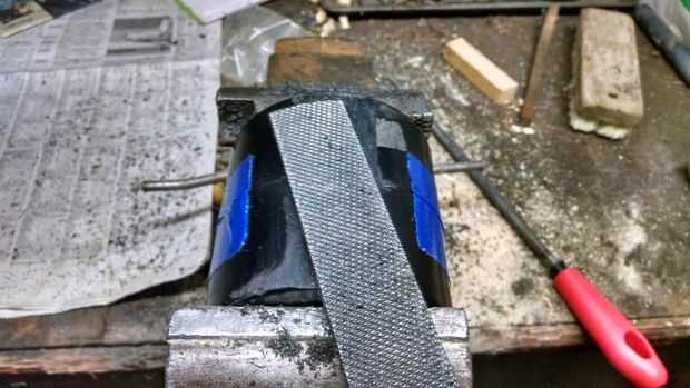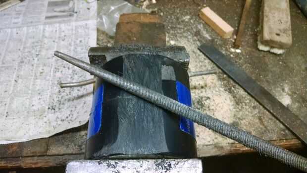 La forma más fácil que encontré para hacer esto es con cinta adhesiva juntos asegurándose de no cubrir el área que vas a archivo y ponerlo en un vicio.
