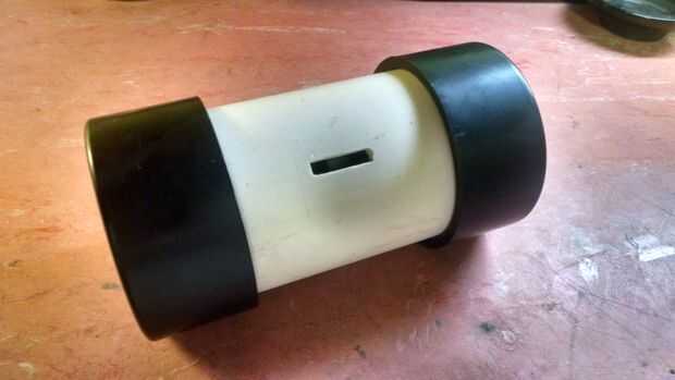 Ahora es el momento de montarlo. Colocar las tapas en PVC y frente a la ranura de moneda en cualquier dirección que desee. Yo recomendaría frente a la ranura de moneda superior dependiendo de cuántas monedas va a almacenar. Asegúrese de que los puntos planos en los casquillos de extremo frente a la dirección de la superficie está en. Esto hará que sea menos bamboleo.
