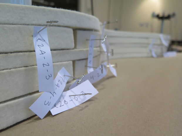 Las rebanadas largas se dividieron en tres segmentos que se anidan más económicamente en el material. El segmento más cercano a la parte superior o cabeza era siempre 1, la media fue de 2, y la parte inferior o pie tenía tres.