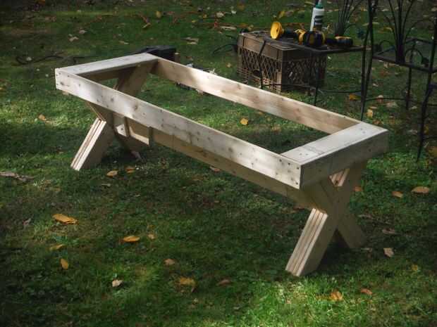 Banco de picnic de madera, madera $30, $15 final. (10 / 15 paso)