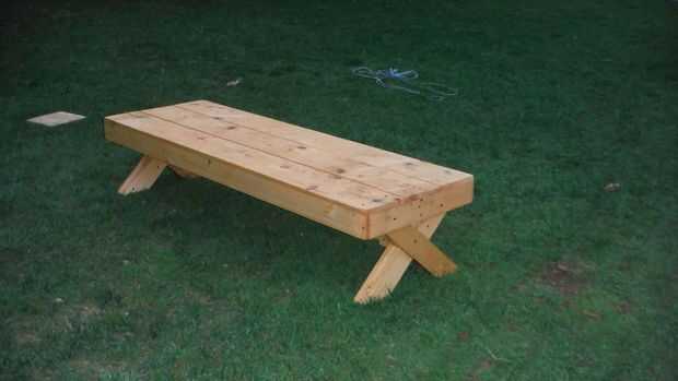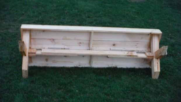 la construcción de este banco es uno de dos maneras, top formas largo o corto camino superior. el fondo es idéntico a cualquiera de ellas. Los dos primeros (en la foto) se hacen la manera larga y tendrán a dos travesaños adicionales para que la zona de asientos no sag. Para la construcción paso a paso más abajo, a construir el corto camino superior.