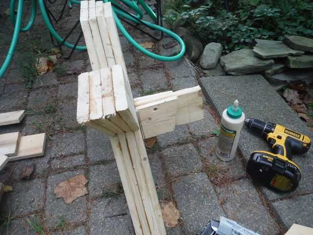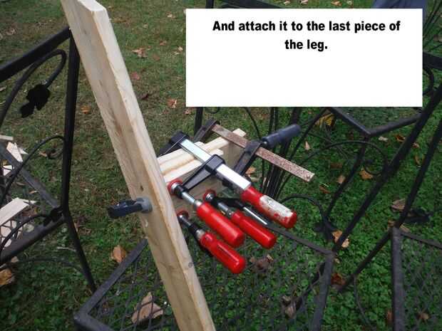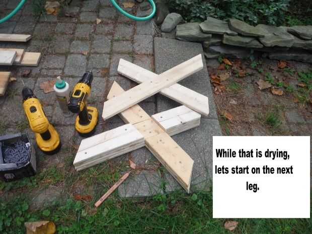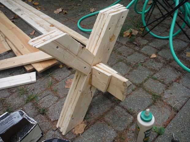 Paso 6: Cuarta capa de pierna atada después de la Cruz miembro soporte es encolados/atornillados en su lugar.