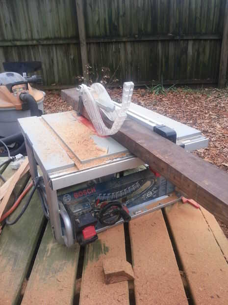 En primer lugar, en la Sierra de inglete, se enfrentaron uno de los extremos de cada 2 x 4 y luego cortarlas a 6' eran aproximadamente 3 3/4" de espesor. Usé la Sierra de mesa para corte 3/16" para obtener cada tabla a 3 9/16". (Más tarde, te llevaré de otro 1/16 usando el cepillo). Después de todo lo que hacía, pasé algún tiempo de calidad con la lijadora orbital. Primero pegué cada uno con grano 120 y luego otra vez con 220. El principal objetivo era limpiar la superficie y tal vez algunas de las astillas hacia fuera. En retrospectiva, yo debo has cortarlas un poco más largo que mi deseado acabado longitud, pero todo ha salido.