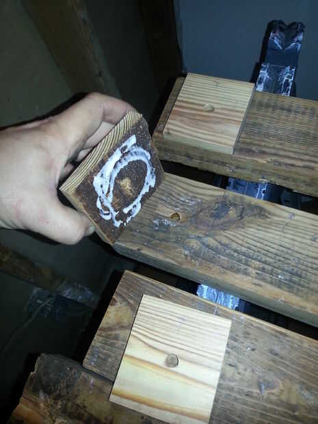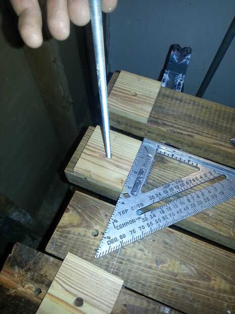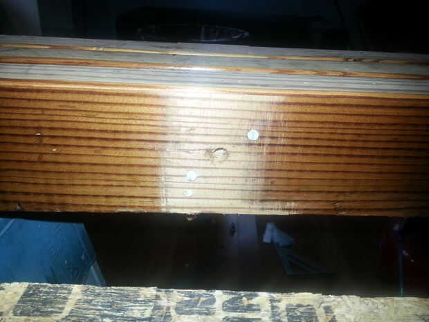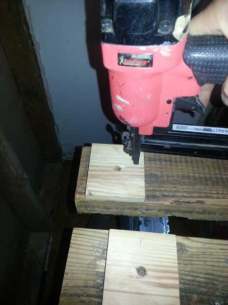 3) usé el 3" enmarcar a clavadora para disparar un clavo a través de la pieza y el espaciador y en el otro.