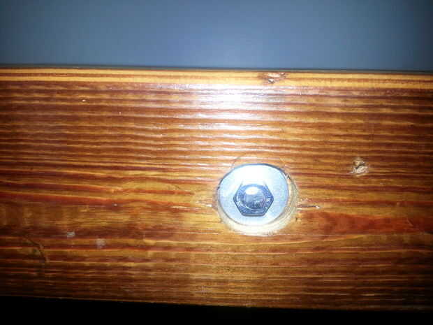 Pegan las dos mitades, corrí las varillas roscadas a través de los agujeros y había apretado todo abajo. Una vez que todo estaba bien y cómodamente, recortan las varillas con una Dremel. Hice otra pasada con la lijadora y aplica unos Costa final de poliuretano.