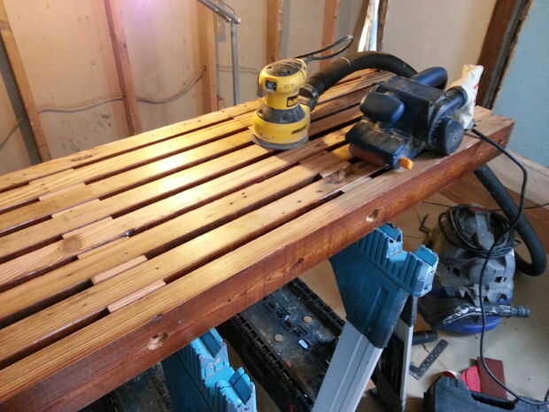 mi lugar de trabajo ha estado en constante renovación, una oportunidad que he tenido de recuperación muy buena madera que habrían terminado en un vertedero de basura de lo contrario. Desde la mesa de trabajo en mi garaje está lleno con mi número cada