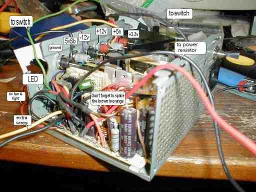 Nota: Algunas fuentes de alimentación tienen un cable gris o marrón para poder sentido en. Este cable debe conectarse a un cable naranja para permanecer en la alimentación. Calor del encogimiento o todo soldado los extremos de la cinta.
