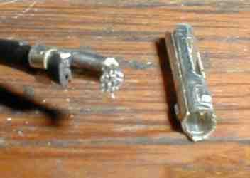 Si usted es realmente aguda que os habréis fijado que está etiquetado como mi segundo post - 5v pero tengo los 5vsb conectado a él, que sería el cable morado, y sería correcto. Tras darse cuenta de que había no - 5v en esta PSU que decidí seguir adelante y hacer que se caliente todo el tiempo. De esta manera pude prueba rápida de LED y tal sin tener que encender el poder. También puede instalar a un conector USB en el caso y tiene un cargador para dispositivos USB. Para las salidas de pin en varios puertos USB basta con ir a esta página http://www.usbpinout.net/. OK, ahora que sabemos donde todo va es hora de salir el soldador. Después de conectar el LED y empalmar los cables marrón y naranja que empecé en el post. Después de un par de intentos tratando de soldar al post, decidí que tenía que haber una manera más fácil. Los enchufes Molex al rescate! Tiré los conectores individuales de un par de viejos enchufes hembra. Si usted nunca estas sacado, hay dos orejitas de cada conector, el truco está en empujar estas un poco por lo que puede extraer. Hacen una herramienta para esto pero también se puede utilizar cualquier cosa lo suficientemente pequeño como para llegar a la parte inferior del conector. Un destornillador joyeros funciona muy bien y también lo hace la punta de su cuchillo x-acto. Suavemente tire del cable mientras empuja cada oreja, uno por uno, hasta que todo se desliza derecha hacia fuera. Resulta que, debido a las "orejas", estos realmente ajustar en los extremos del poste. En lugar de tratar de soldar el conector sólo rompí lo en su lugar. Luego pegó el cable en el extremo del conector y los soldados juntos. Antes de introducirla en los conectores, a la espalda del gato de plátano, me resbaló sobre un trozo de envoltorio y selló todo.