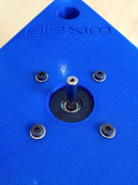 Utilice los cuatro M3 tornillos de cabeza hueca y las arandelas (no esta vez frutos secos) para conectar el segundo motor y la otra armadura triangular. Las arandelas están otra vez, en el lado con el logo. Para esto utilizará el número de llave Allen 2.