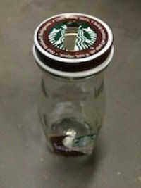 Reciclar botellas de Starbucks Frappachino en un banco para guardar el cambio para su próxima bebida.